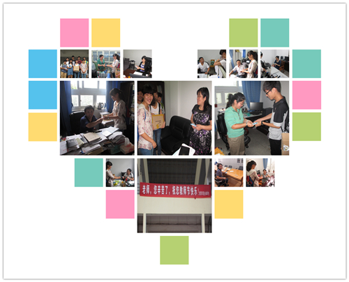 团委学生会在团委书记王配才老师的带领之下,满怀着热情,开始了积极地准备工作。首先是整理了一下提前做好的“节日贺卡”,这些贺卡是同学们亲手制作的,上面写满了同学们对老师祝福的话语,载满了点滴的感动。接下来,王老师带领我们将小制品一一地送到了各位老师的手中。老师们那如三角湖畔盛开的荷花一般的迷人微笑,亲切的感谢话语,真诚礼貌地迎送都令我们无比敬重。同时,老师们也给予了我们深深的期盼,并要求转达对同学们的谢意。最后参加本次活动的师生们照相留念,照片上的灿烂笑容将这瞬间定格,永恒珍藏!