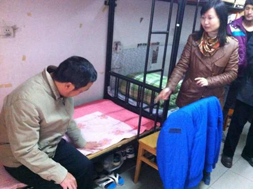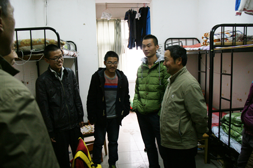 2013年12月9日下午,为实地了解学生需要,解决学生困难,保障学生生活,校党委书记谭仁杰、党委副书记王南南一行,带领学工处相关领导,在小宝影院 党委副书记胡承林及部分学办老师的陪同下,对小宝影院 学生公寓进行了走访,并为贫困生发放棉被补助。