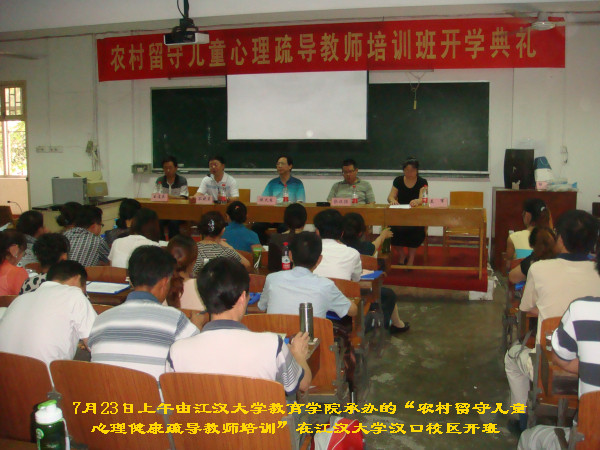 随着社会经济的发展,越来越多的农村富余劳动力进城务工,随之而产生的农村留守儿童问题也日益突出,而他们的心理健康也亟待得到关注与解决。武汉市教育局高度关注这一问题,针对留守儿童亲情缺慰、心理缺疏的情况,特组织本次培训班,旨在使武汉近郊中小学教师能够更深入地去观察、体会留守儿童心理,并能及时对他们进行心理疏导,从而提高全市学校的心理疏导能力。本次培训内容涉及到对武汉市学校心理健康状况的介绍,以及农村留守儿童的学习辅导、情绪辅导、人际关系辅导等。其中心理体验活动是这次培训的一大亮点,这是一门适宜在学校进行的心理辅导的理论与实际操作课程,通过玩“模仿秀”、“大风吹起来”,“各自找家”等活动,使众教师深切感受到人与人之间的团结、信任,并能把这传达给学生。现场气氛热烈,笑声连连,取得了很好的效果。