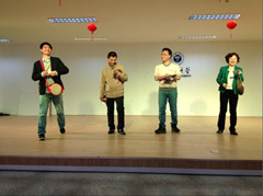 活动伊始,主持人以“玉龙辞旧岁,金蛇迎新春”开头向各位教师送上祝福。之后由数媒的贠翔悦和魏星老师带了一首对唱歌曲《明天也要做伴》,接着12级教院辅导员徐磊和韦辉等五人带来了一首《和未来有约》,同时他们也送上了对教工的祝福。随后心理学系带来了“武汉话版本”原创作品《三句半,喜事多》,结合着鼓和锣,笑料百出。紧随其后,许磊老师又带来了一首《老男孩》再一次掀起活动的高潮。徐烨带来了《爱情这杯酒,谁喝都得醉》。期间,团委学生会也向各位女老师献上了精心准备的礼物,表达了学子们对老师的敬意与爱戴。最后,活动在舒缓的歌声中圆满结束。